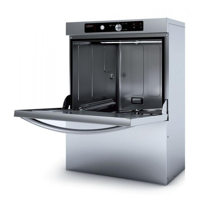 FAGOR mosogatógép. Kosár 350 x 350 mm. 22 cm maximális felhasználható magasság, kapacitás: 30 kosár/óra. Eletromechanikus vezérlőpanel. Ciklusidő 120 másodperc. Rozsdamentes kettős mosogató és öblítő rendszer alsó és felső forgókarral felszerelve. Lekerekített kád a könnyebb tisztítás és elfolyás érdekében. Duplafallal bevont mosogatókád, amely hangizoláló és sokkal kisebb hőmérsékletvesztést eredményez. Duplafalú ajtó. Vízfogyasztás 2 liter/ciklus.